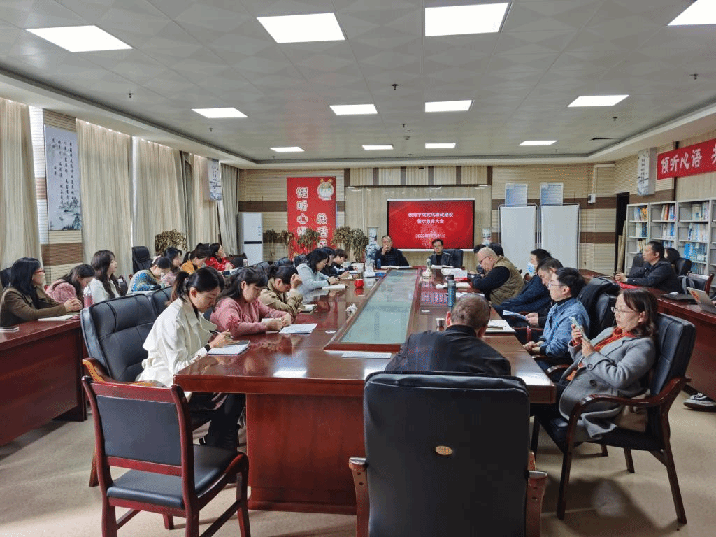 2022年11月21日,教育学院党风廉政建设警示教育大会在特教楼七楼迎评办公室召开。教育学院党委书记刘昌友,党委副书记、院长邱天龙和院领导班子成员出席会议,全体教职工参会。会议由邱天龙同志主持。