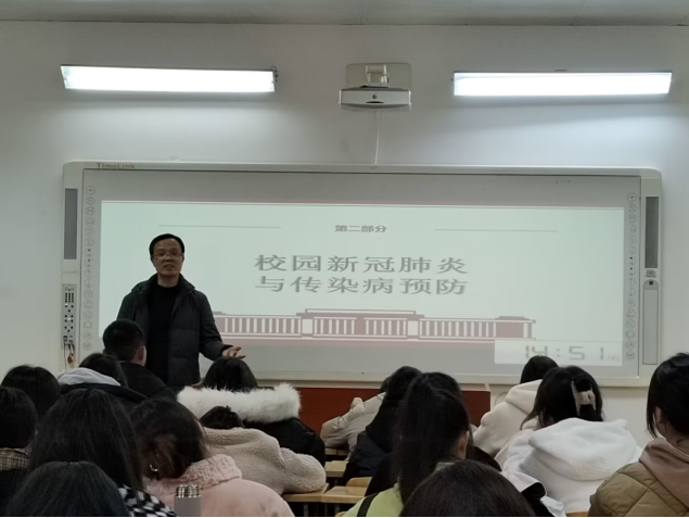 首先,邱天龙院长对同学们表示亲切的问候,就深入学习贯彻党的二十大精神进行了详细的讲解,就校园新冠肺炎与传染病预防提出了要求,最后就“构筑坚强堡垒,守护校园安全”的内容与全体同学进行了深入探讨。