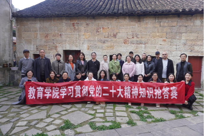 抵达牛蹄关村乡村振兴示范基地,刘昌友书记带领全体党员同志重温入党誓词,带领全体教职工学习中国共产党党史。全体教职工积极参与了“学习贯彻党的二十大精神知识抢答赛”“你来比划我来猜”等丰富有趣的党建活动,展现出教育学院教职工良好的精神面貌。