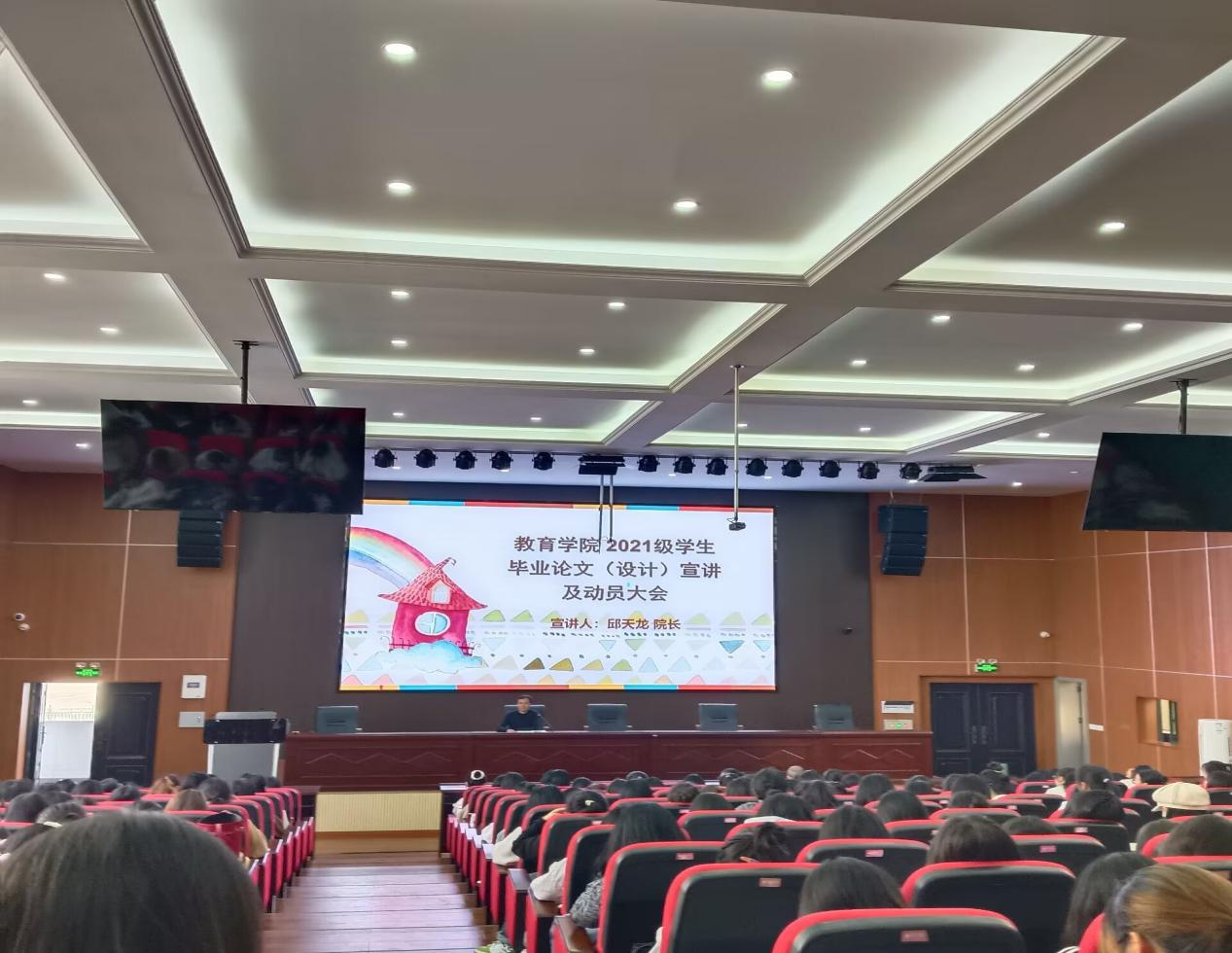 本次毕业论文(设计)宣讲暨动员大会使教育学院2021级全体同学对毕业论文(设计)工作有了更清晰的认识,相信在接下来的实际工作中,同学们能牢记院长的嘱托,高质量地完成本科毕业论文(设计)的撰写。