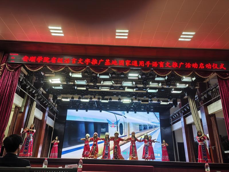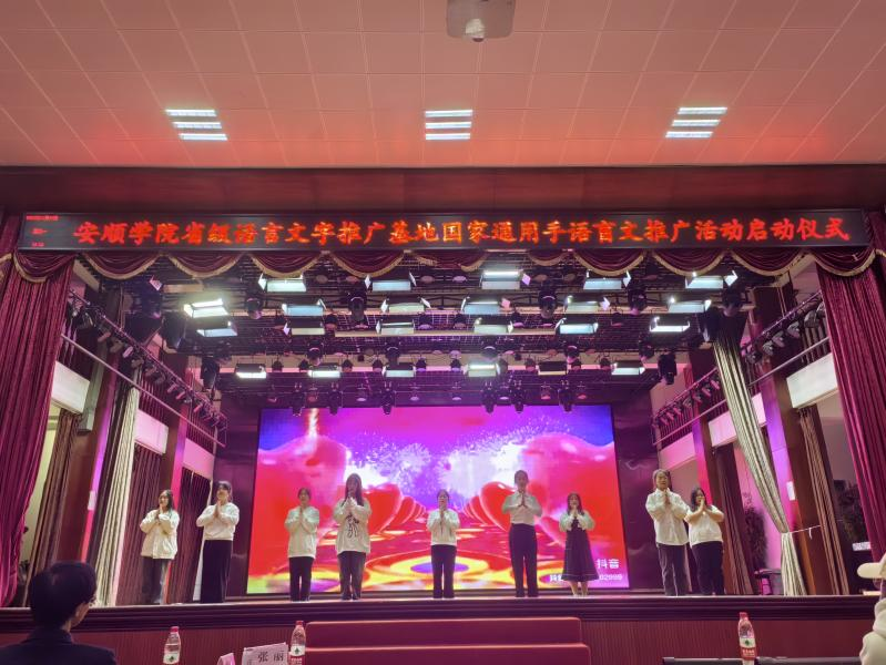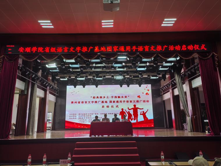 11月6日下午,安顺学院省级语言文字推广基地在安顺学院大礼堂举行国家通用手语盲文推广活动启动仪式,本次活动由贵州省语言文字推广基地、安顺学院特殊教育学院主办,安顺学院团委协办,特殊教育学院团总支、学生会、“五月阳光”社团、“手语爱心”协会承办。