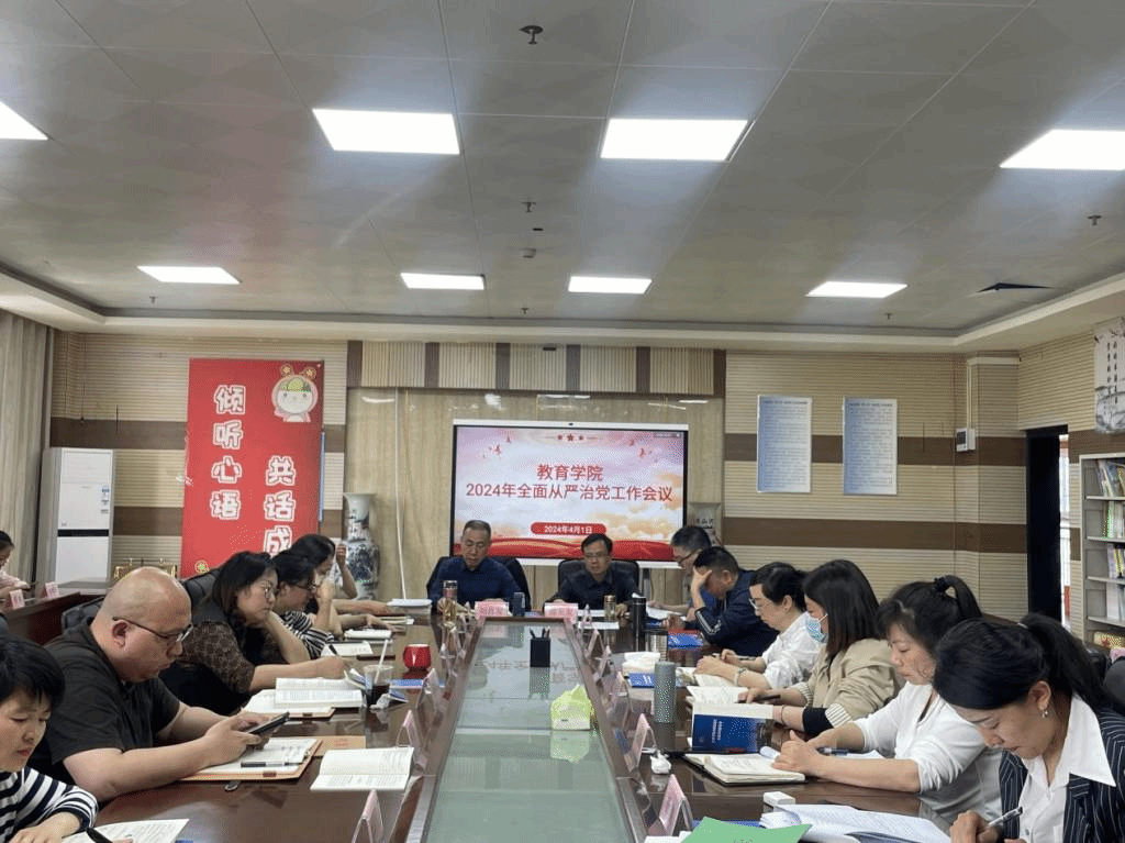 4月1日下午,教育学院2024年全面从严治党工作会议在特教大楼7楼迎评办公室召开,全体院领导出席会议,教育学院院长邱天龙主持会议,全体教师参加会议。