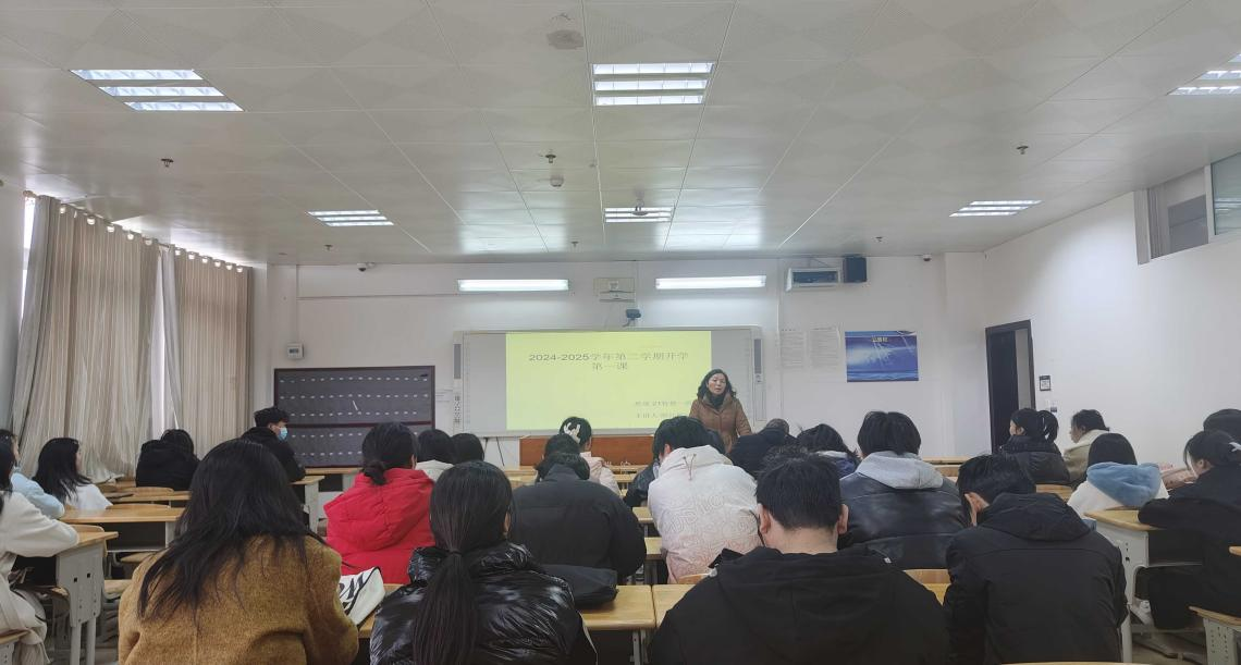 开学第一课中殷红敏副校长围绕校园安全、心理健康和就业三大主题为同学进行了宣讲。在守护校园安全方面,殷校长围绕防溺水、防伤害、防极端天气、防煤气、交通安全、消防安全、食品安全、饮用水安全、危化品安全、反诈防诈、防毒拒毒等方面给同学们开展了安全宣传教育,叮嘱同学们提高安全防护意识,平安度过最后一学期大学生活。在心理健康方面,针对毕业生普遍存在的焦虑情绪,殷校长给同学们分享了一些实用的压力管理方法,如‌认知调整、情绪释放、行动规划等。并告诉同学们要学会接纳情绪、主动求助,提高个人心理抗压和承受能力,强大自己。在就业方面,殷校长提醒同学们要树立正确的就业观,把握机遇,做好求职准备,选择适合自己的工作,同时叮嘱同学们在未来的工作和生活中要加强学习,不断提升个人能力,做一个诚实有格局的人,行稳致远。最后,殷校长希望同学们始终以安全为底线、以健康为基石、以奋斗为底色,在人生新赛道上行稳致远。