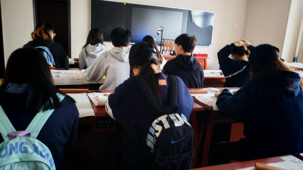 2025年4月30日,2024级教育学类二班在特教楼毛笔实训室开展毛笔训练