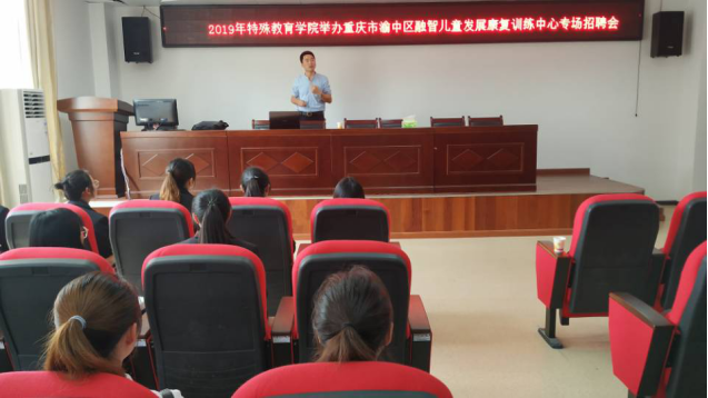 2019年4月10日中午,安顺学院特殊教育学院在特教大楼409室举办重庆市渝中区融智儿童发展康复训练中心专场招聘会。