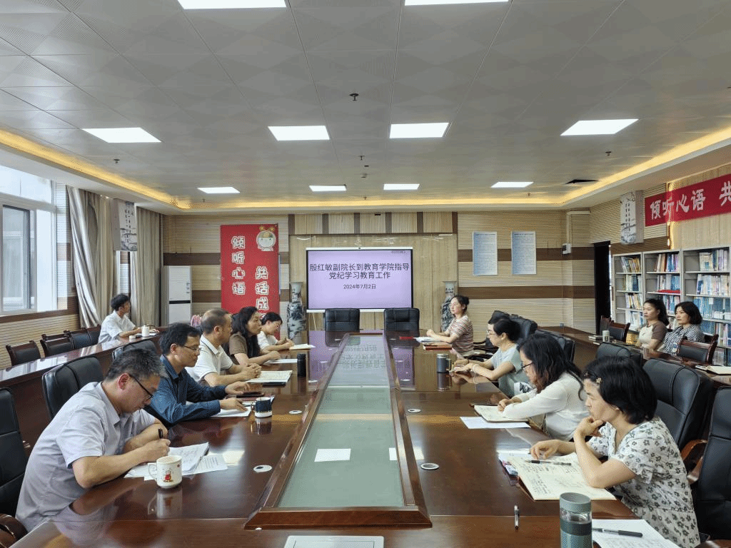 为深入学习贯彻习近平总书记关于党纪学习教育的重要讲话和重要指示精神,切实增强开展党纪学习教育的思想自觉、政治自觉和行动自觉,按照学校党委关于党纪学习教育的工作部署,7月2日下午,安顺学院党委委员、副校长殷红敏到教育学院指导党纪学习教育工作。
