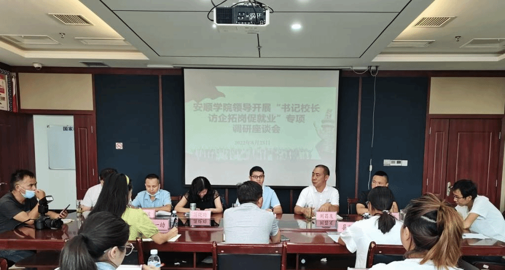 2022年8月25日,由安顺学院副校长张来带队、教育学院党委书记刘昌友、招就处处长蒋晓昀、教育学院学前教研室主任朱晓群等一行,前往镇宁自治县教科局开展毕业生就业拓展和人才需求调研,镇宁县教科局副局长周龙及镇宁部分幼儿园园长及相关负责人参加了调研座谈会。