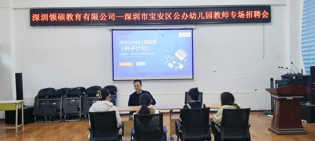 本次专场招聘会上,深圳瓴硕教育有限公司对深圳市教育局关于开展全市幼儿园师资培养“种子计划”的相关政策进行了解读,也从毕业生们所关注的招聘要求和福利待遇等方面进行了详细的介绍。为我院2024届毕业生提供了就业平台和更多选择的机会。