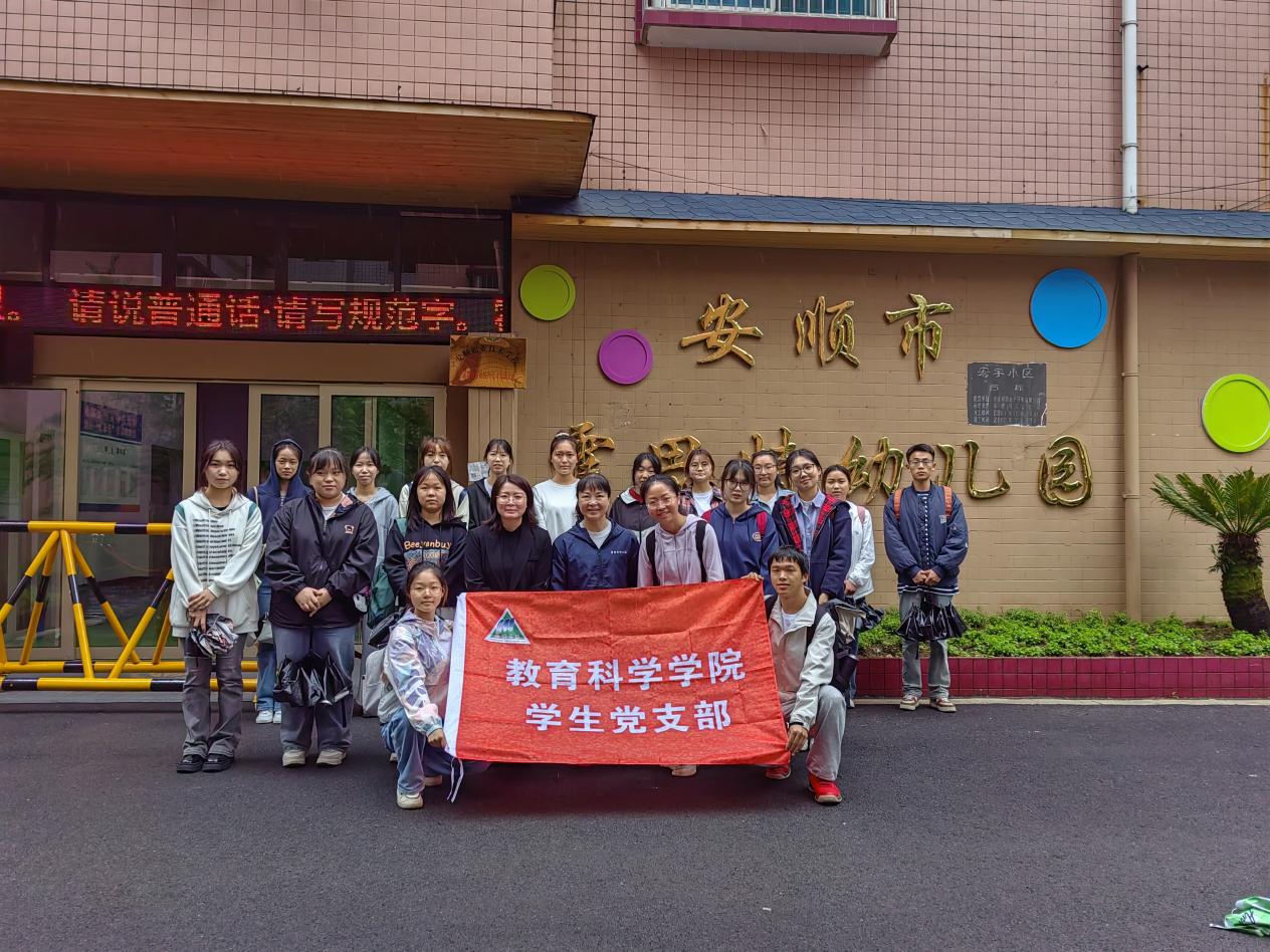 为深入学习党的二十大精神,贯彻落实习近平新时代中国特色社会主义思想,5月8日下午,教育科学学院学生党支部组织师生党员前往安顺市霍思特幼儿园开展“韵律活动进校园:童心向党,健康成长”主题党日活动,本次活动由教育科学学院学生党支部书记谭婧老师带队,教育学院党委专职副书记郭雯出席并指导主题党日活动。