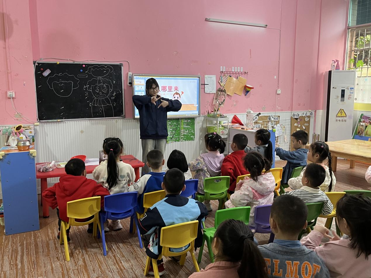 活动现场,同学们以饱满的热情和专业的素养,为孩子们打开了一个丰富多彩的律动世界。他们精心挑选的童谣,结合欢乐多姿的体态语言和自编自创且富有趣味性的互动游戏,让幼儿在轻松愉快的氛围中体验到了韵律活动带来的节奏之美。孩子们聚精会神地聆听,积极地参与互动,展现出他们对韵律活动的浓厚兴趣。