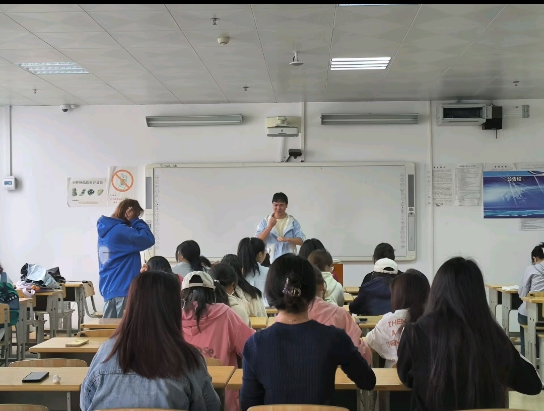 2025年5月6日,2022级特殊教育(2)班在特教楼1006教室进行手语训练