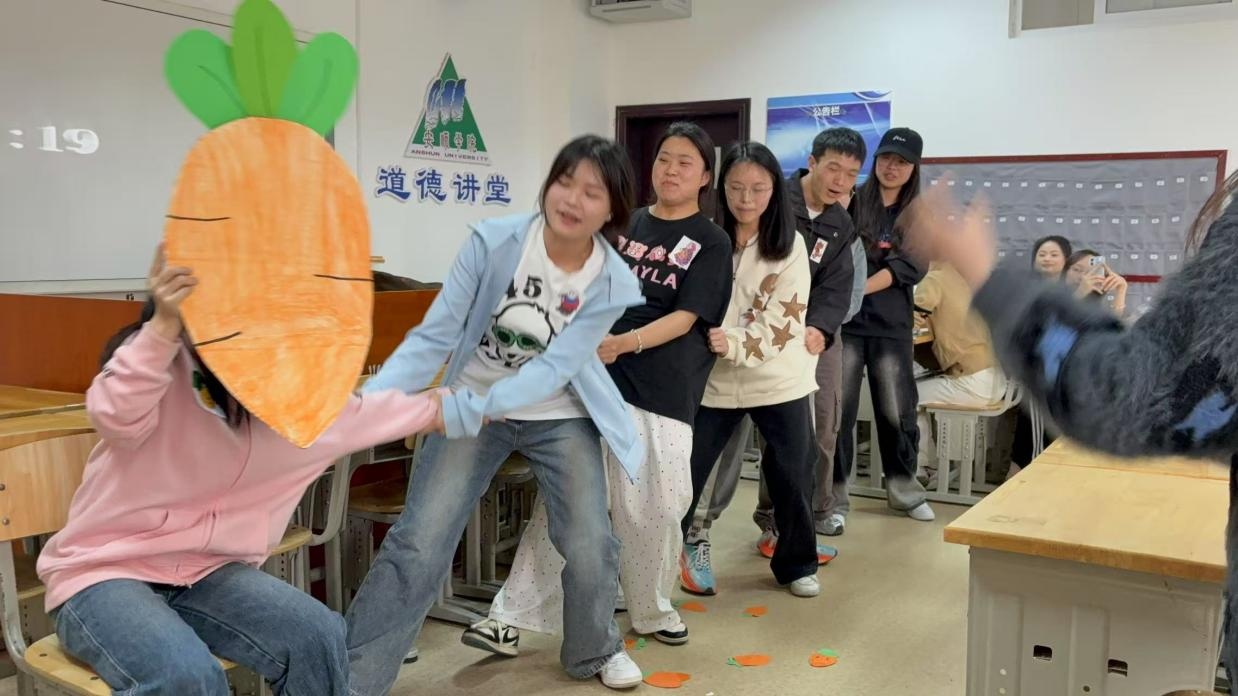 2025年5月7日,2022级学前教育在0909开展儿童剧《拔萝卜》