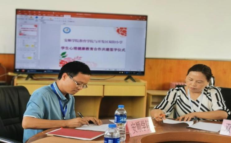 9月15日下午,由院长邱天龙教授带队,教育学院心理学专业教师团队一行前往开发区双阳小学,与该校进行学生心理健康教育合作共建签约。签约仪式现场有教育学院院长邱天龙教授、心理学专业教师柴洁余、应用心理学教研室主任罗思亮、心理咨询中心教师杜昆筑。双阳小学副校长焦俊、政教处主任岳立辉老师、学校心理咨询指导教师汪先娥共同出席。